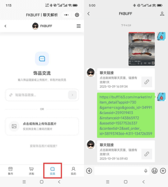 将饰品链接复制到 FKBUFF,即可进入该饰品的专属群聊进行聊天,新消息会通过多种渠道进行提醒